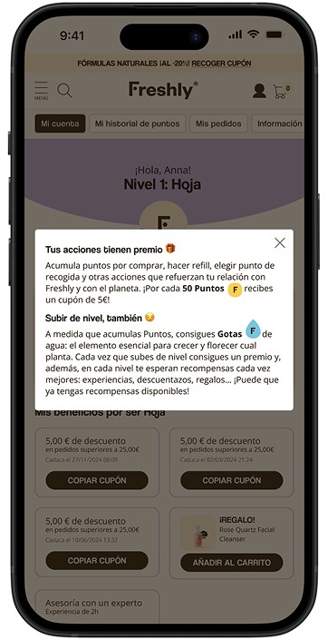 Freshly tiene un programa de fidelización (Freshly Club), donde los usuarios ganan puntos a través de compras y con esos puntos pueden conseguir descuentos, regalos o experiencias. Desde que se lanzó en 2021 (con una agencia externa) el proyecto no sé había vuelto a tocar. Decidimos realizar un research para indentificar oportunidades de mejora.