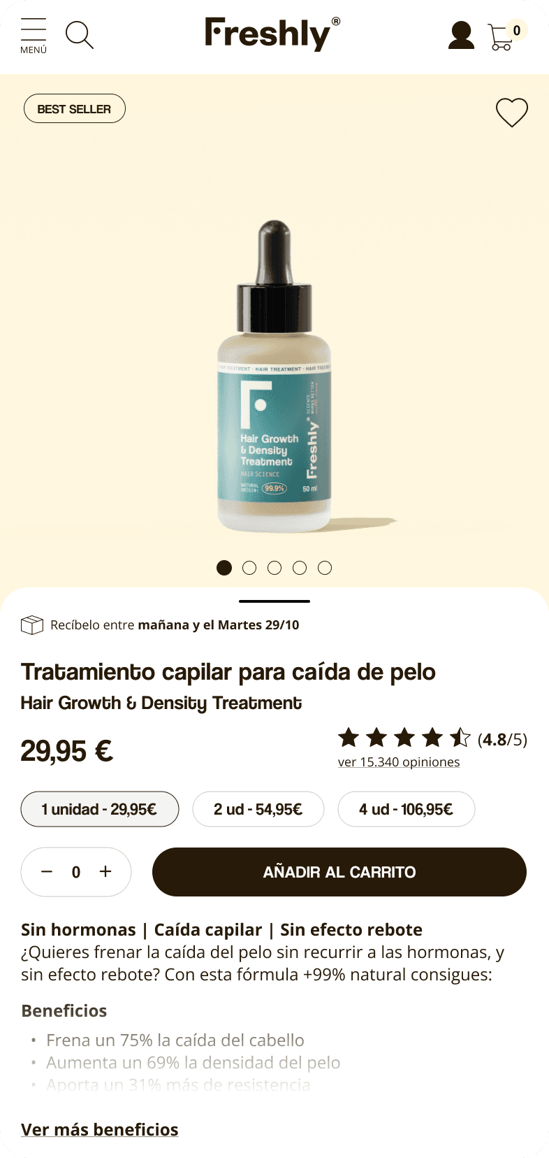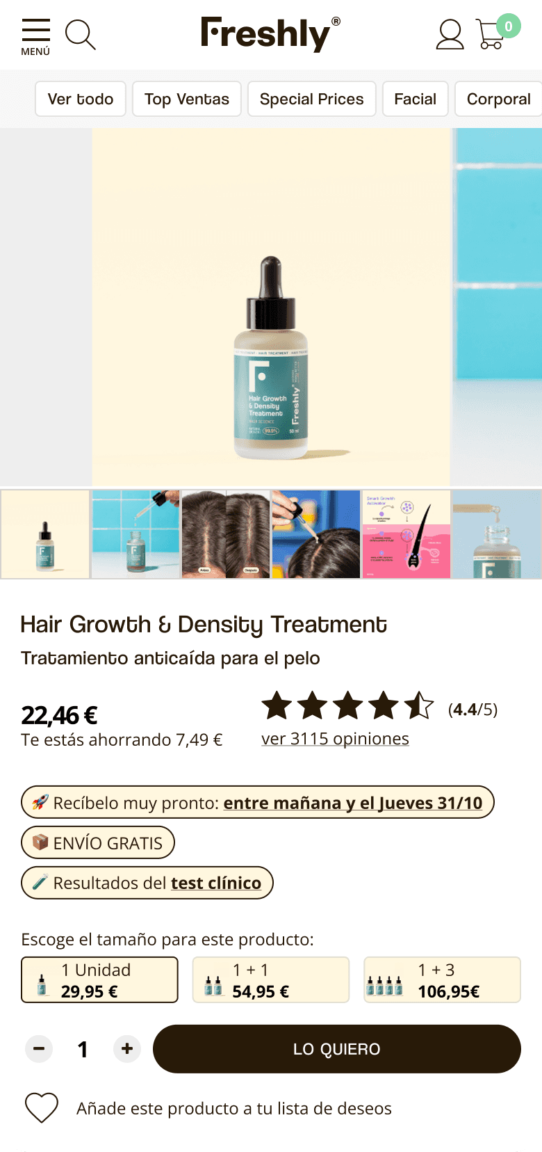 Implementamos la nueva PDP de forma gradual. Primero la probamos en los 5 hero products y se la mostramos únicamente al 20% de los usuarios que visitaban esas PDPs. Fuimos monitorizando las métricas de cerca y aumentando progresivamente el porcentaje de usuarios que veían el nuevo diseño. Cuando los resultados se mantuvieron consistentemente sólidos, escalamos el despliegue al 100%, ya que las métricas fueron muy significativas desde el principio.